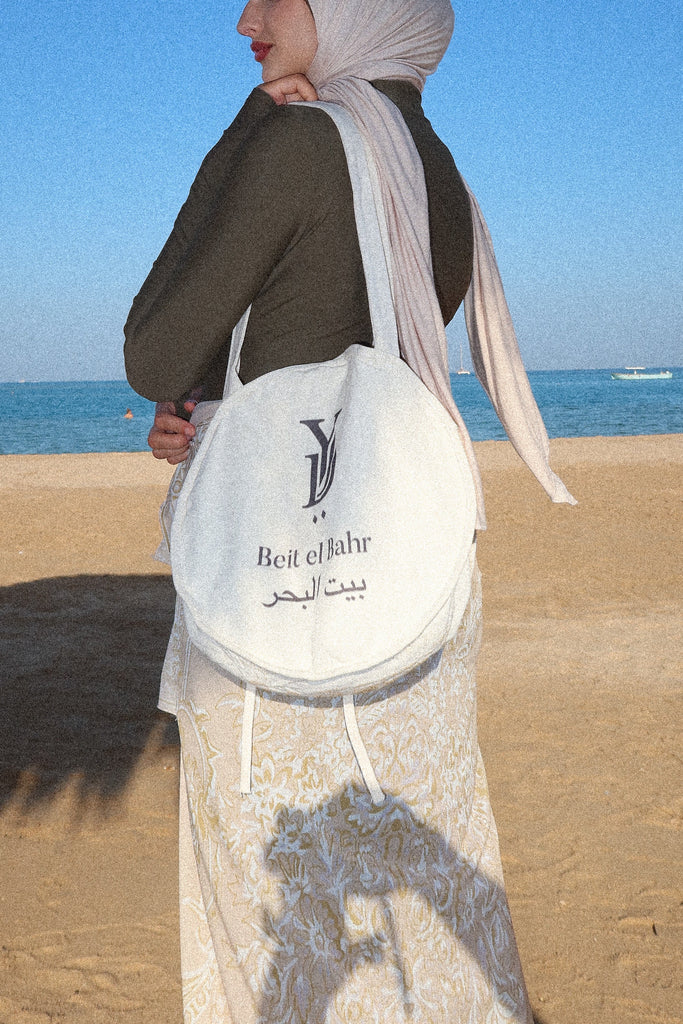 Your perfect grab-and-go beach companion. Crafted from canvas, this tote is sized just right to carry all your beachside essentials without the bulk. Finished with our signature logo and inspired by the Beit El Bahir swim collection theme, it adds a touch of effortless summer style to any look.