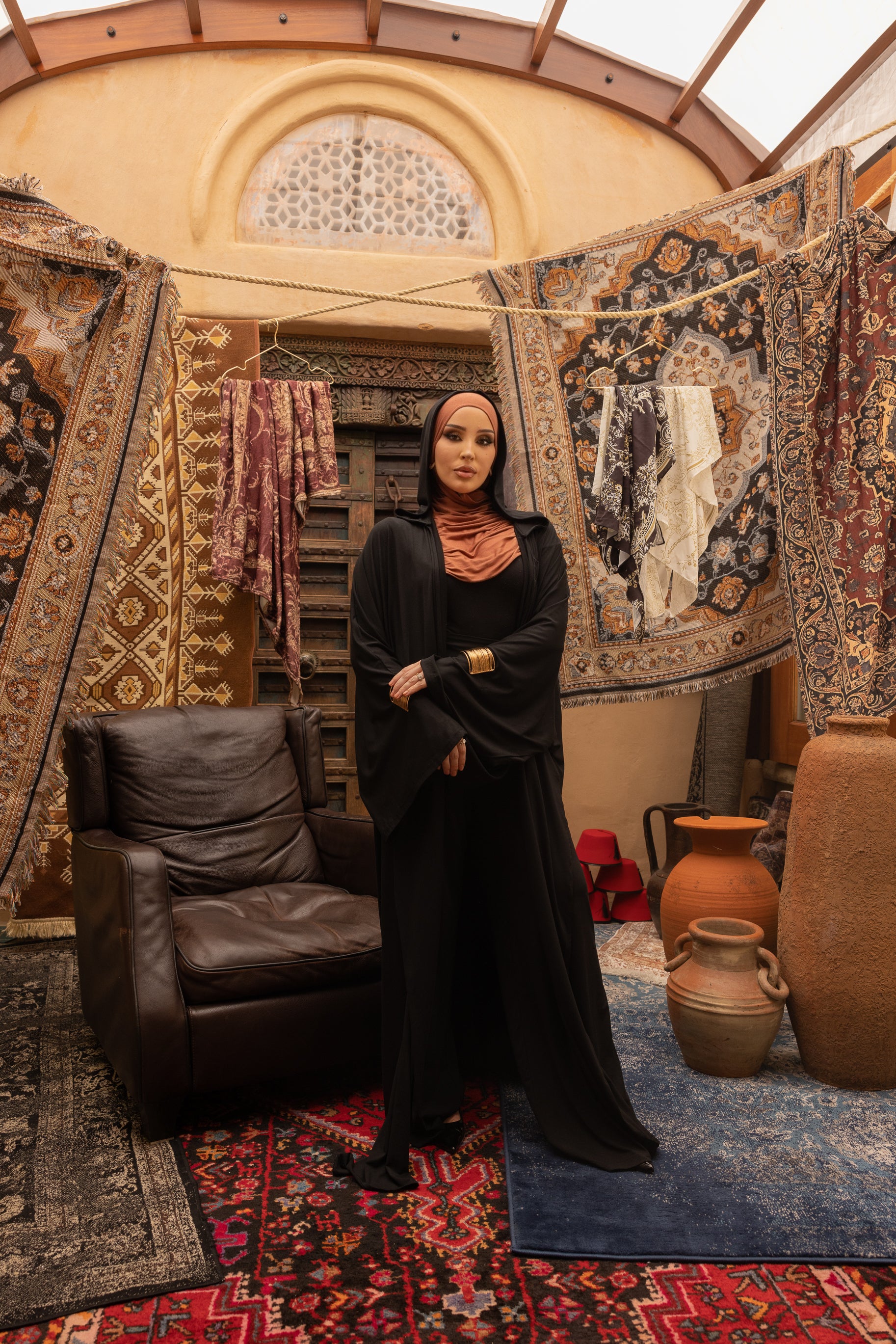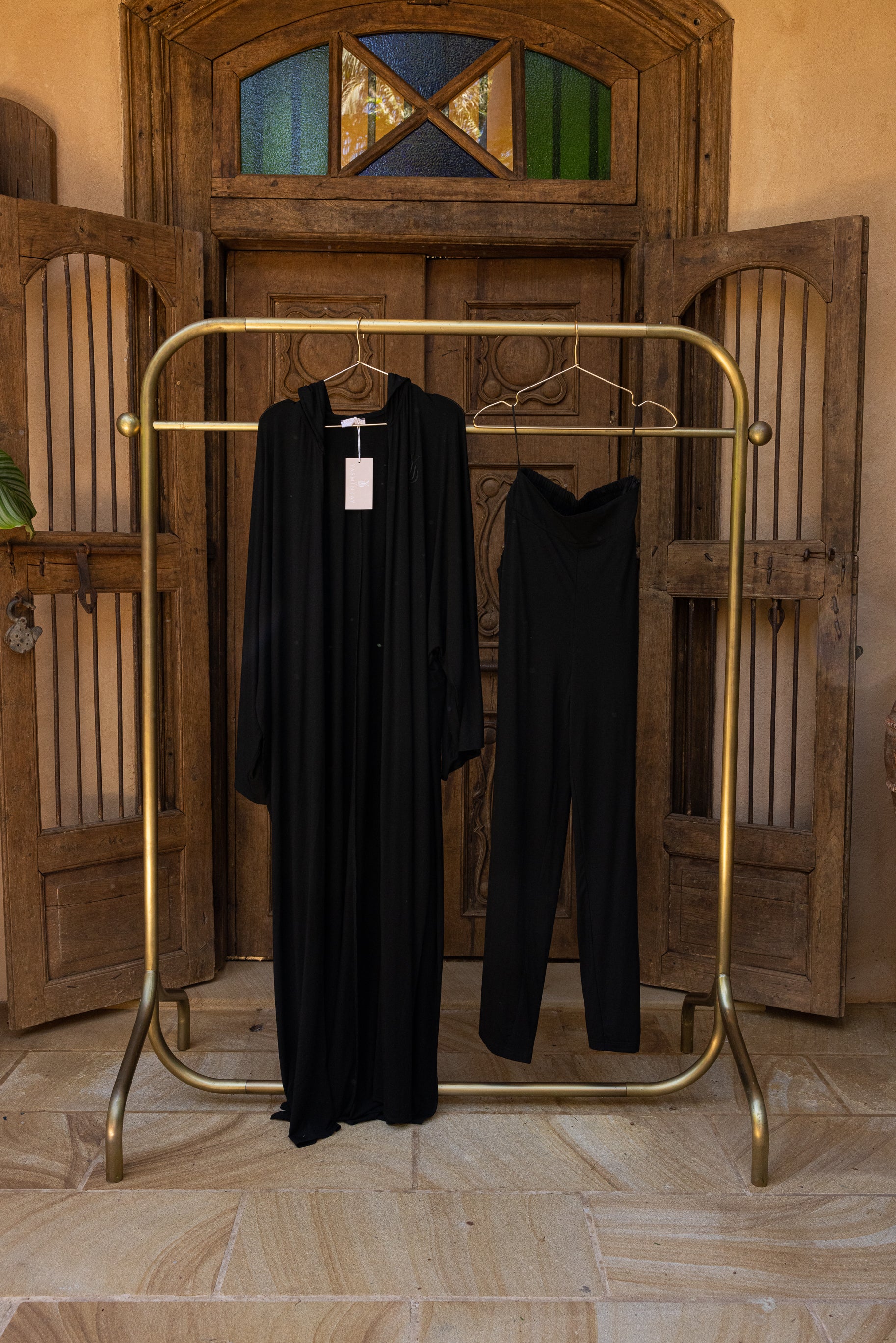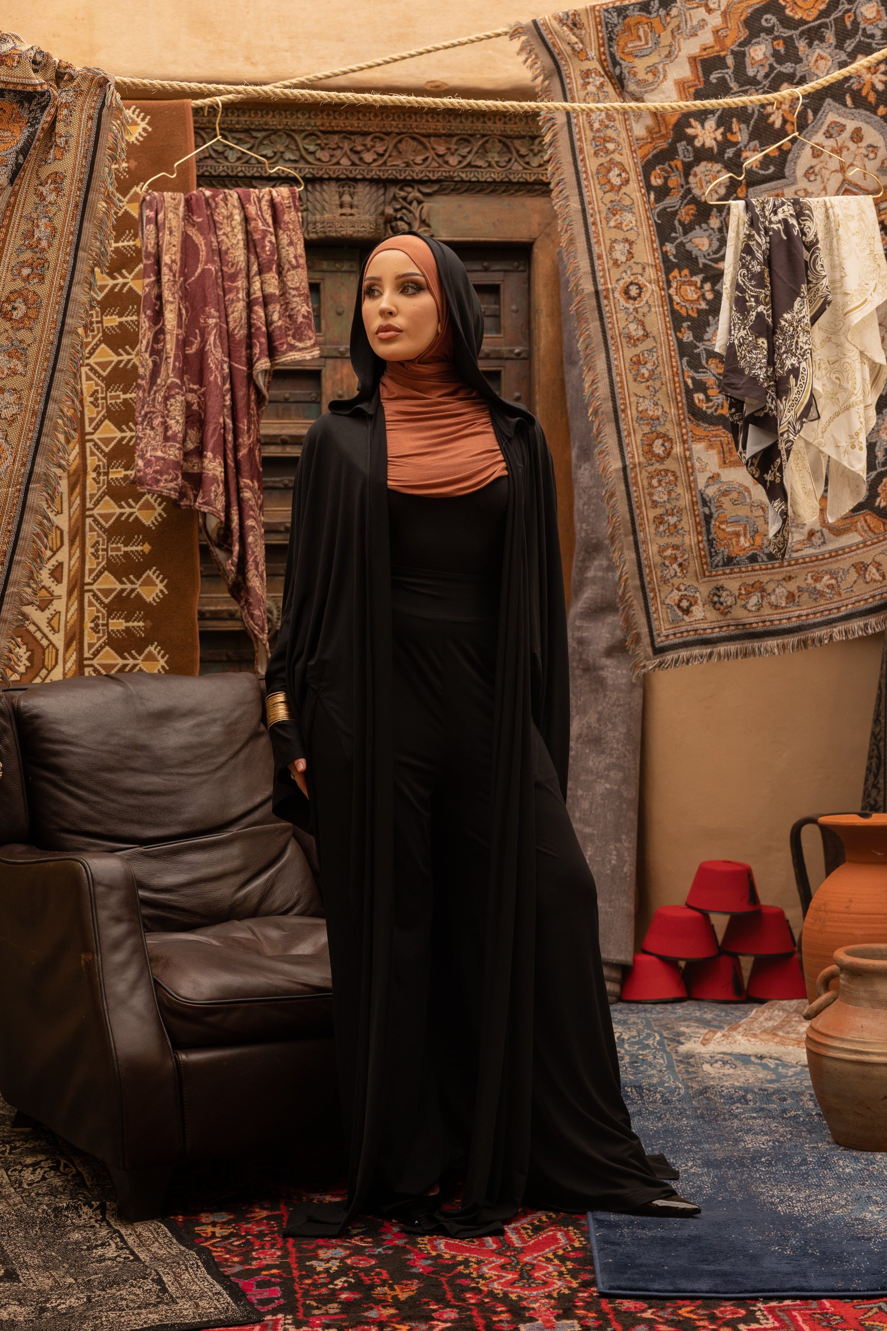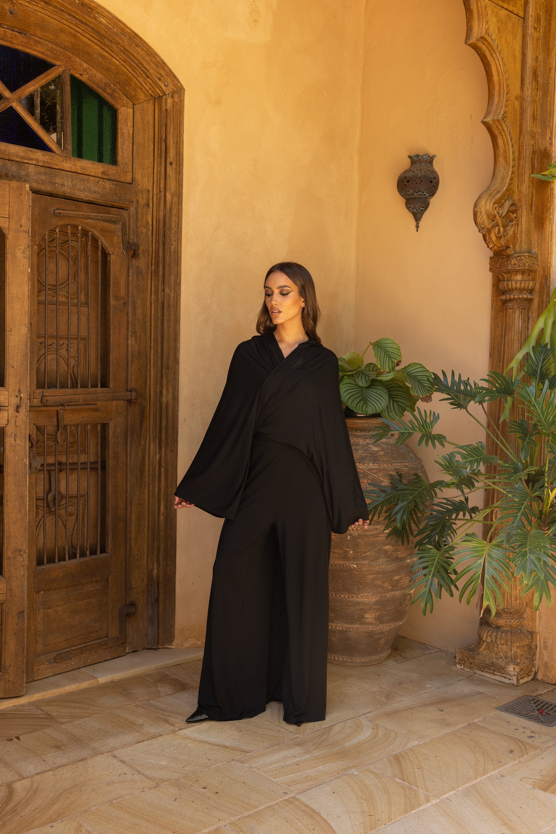 The Rabtah Hoodie Set features an oversized cape hoodie, one of our most versatile pieces. Rabtah, translating to tie or wrap, reflects the many ways this piece can be styled, wrapped and tied to suit your look and mood.