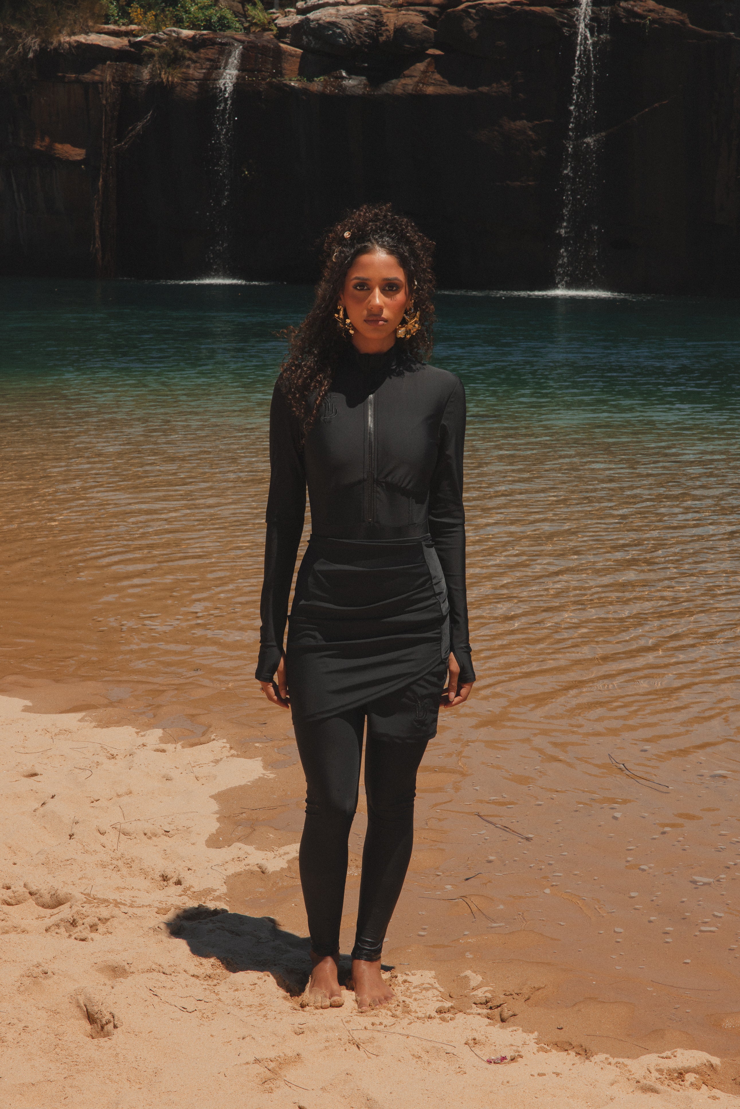 The must-have essential for your swimwear and workout wardrobe – the Swim Leggings in Black. These high-waisted leggings offer a comfortable, tight-fitting design that provides excellent support and freedom of movement, whether you're swimming or working out. Perfectly paired with our Shams Paddle Suit or Zaytoun Drawstring Swim Shirt for a complete look. Also available in Olive.