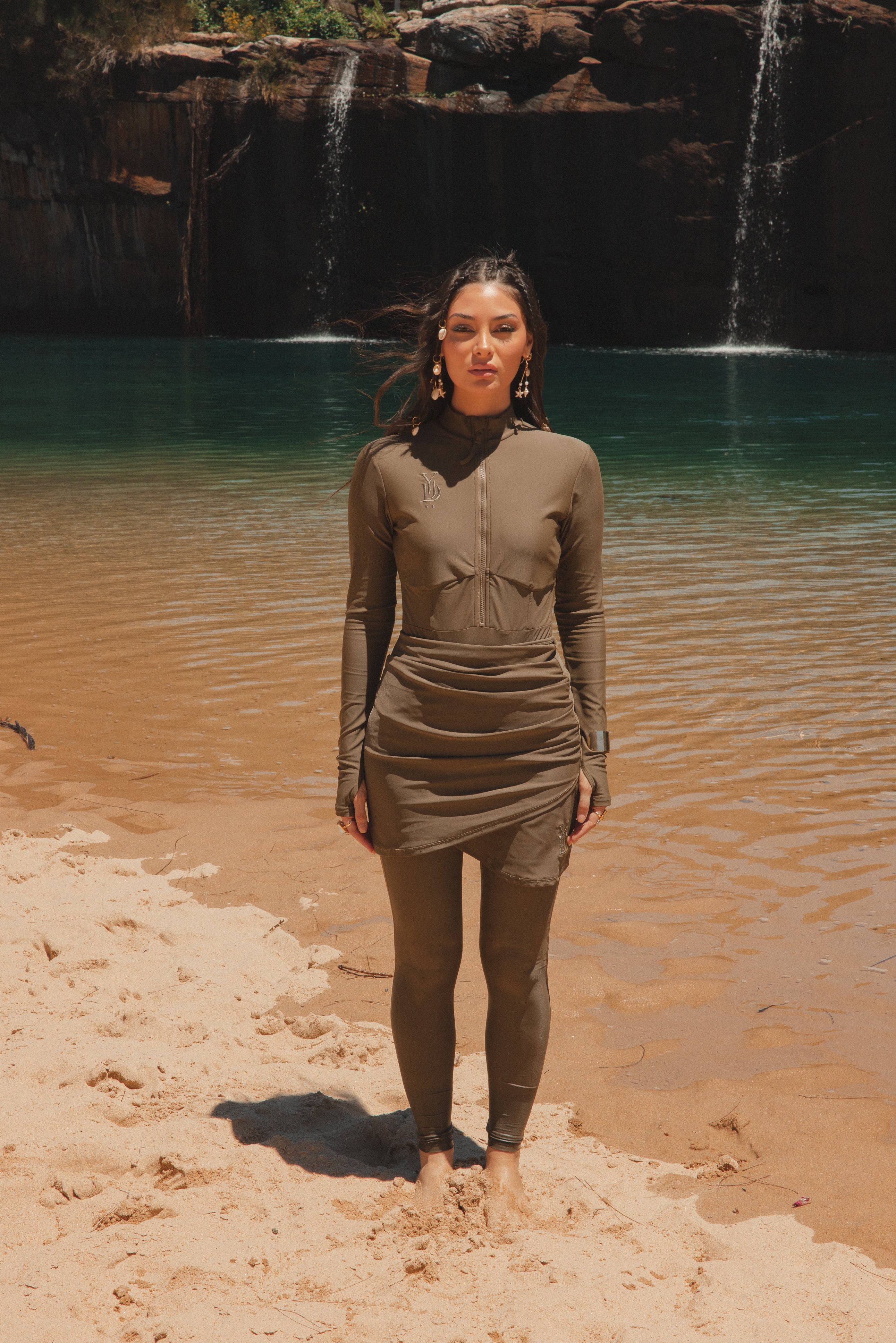 The must-have essential for your swimwear and workout wardrobe – the Swim Leggings in Olive. These high-waisted leggings offer a comfortable, tight-fitting design that provides excellent support and freedom of movement, whether you're swimming or working out. Perfectly paired with our Shams Paddle Suit or Zaytoun Drawstring Swim Shirt for a complete look. Also available in Black.